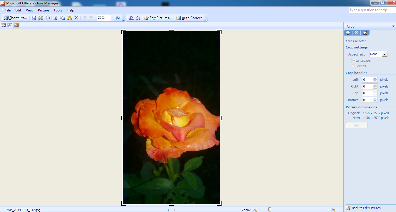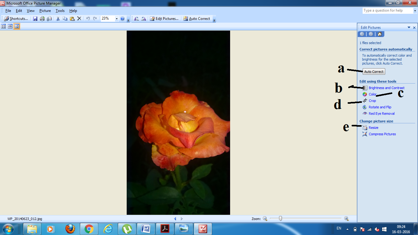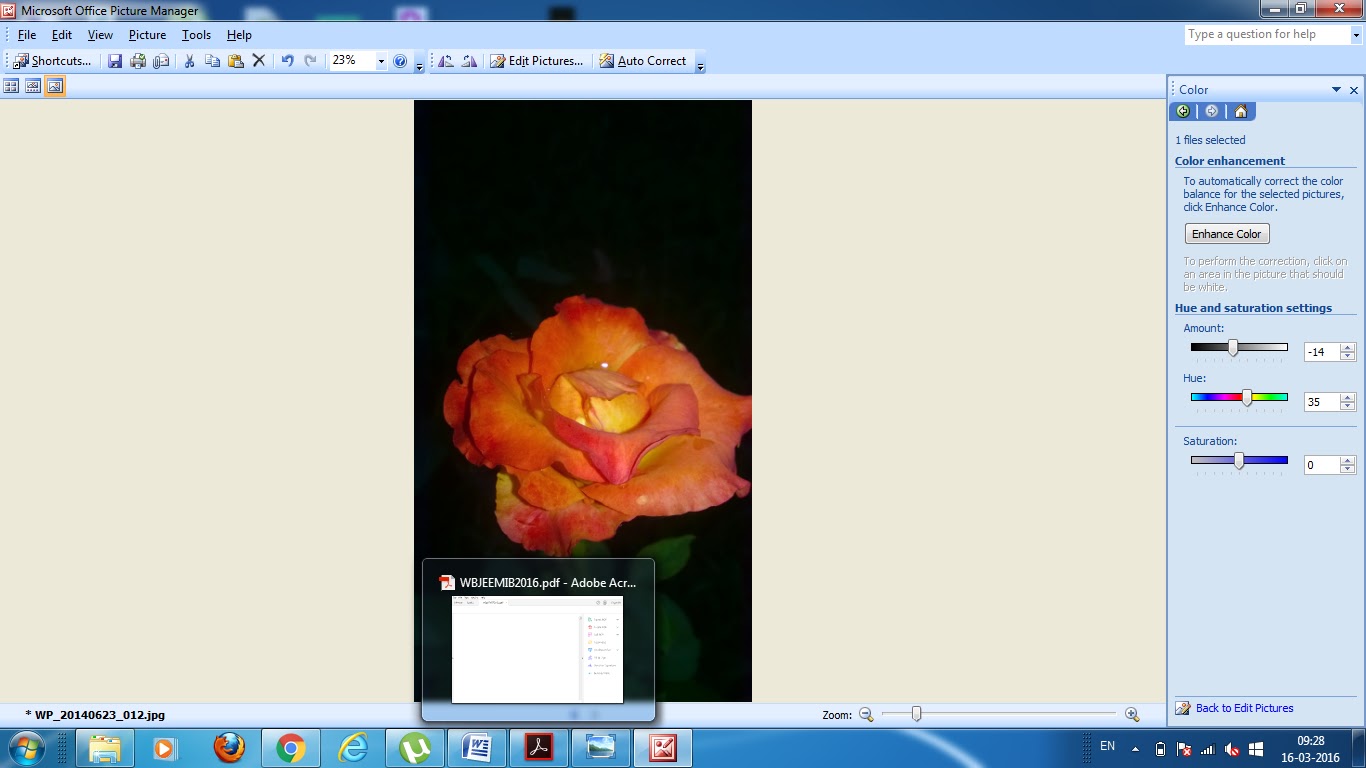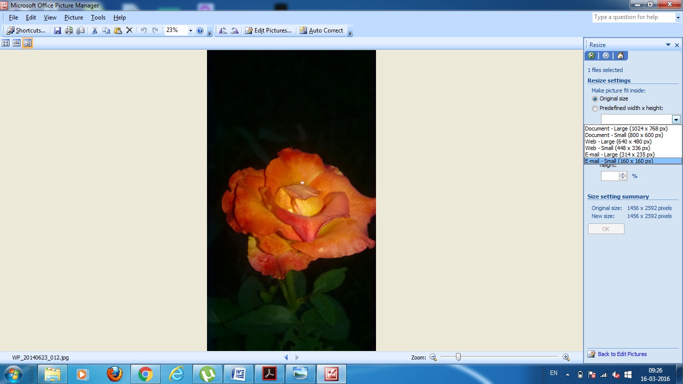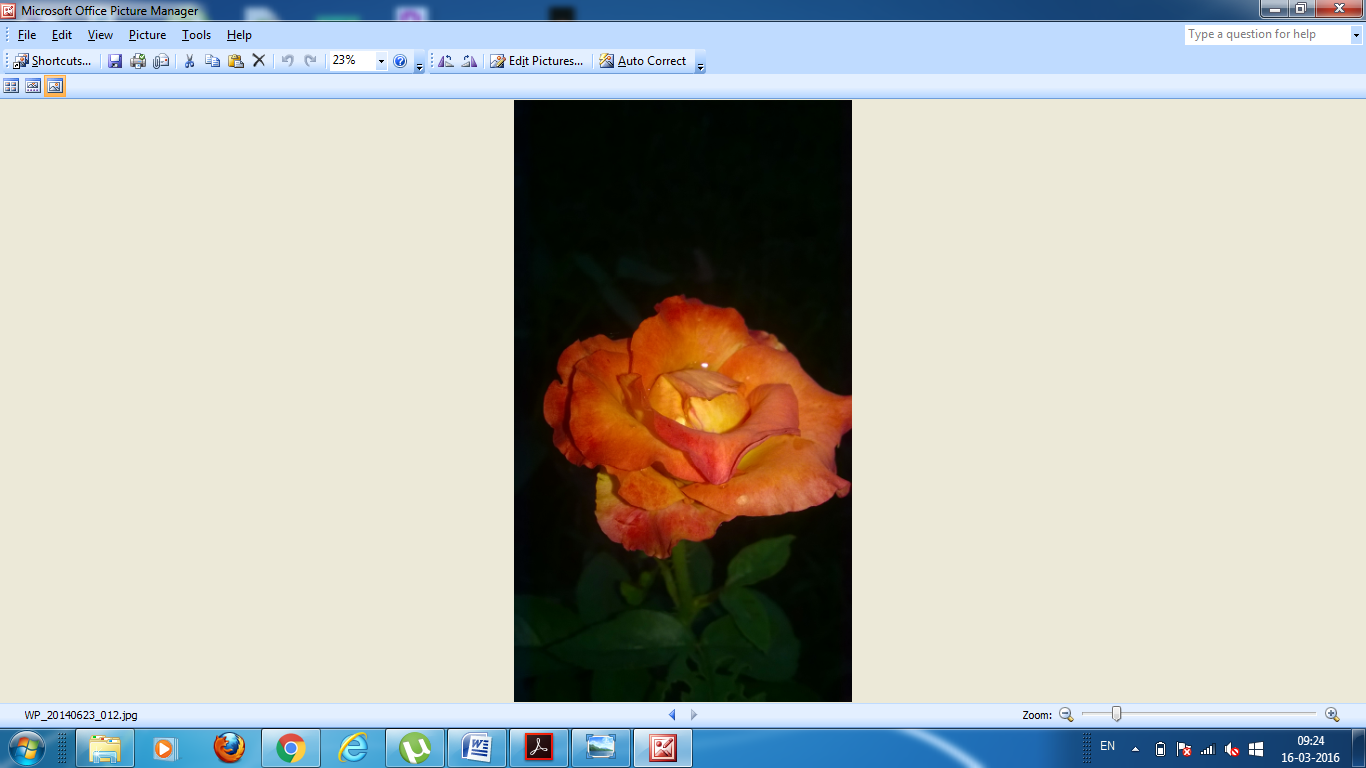 Step- II:-Now right hand click on your Photos/Docs and get the option of open with, select Microsoft Office Picture Manager. For example, I have taken picture of a rose flower. A snapshot of that page has shown below.
